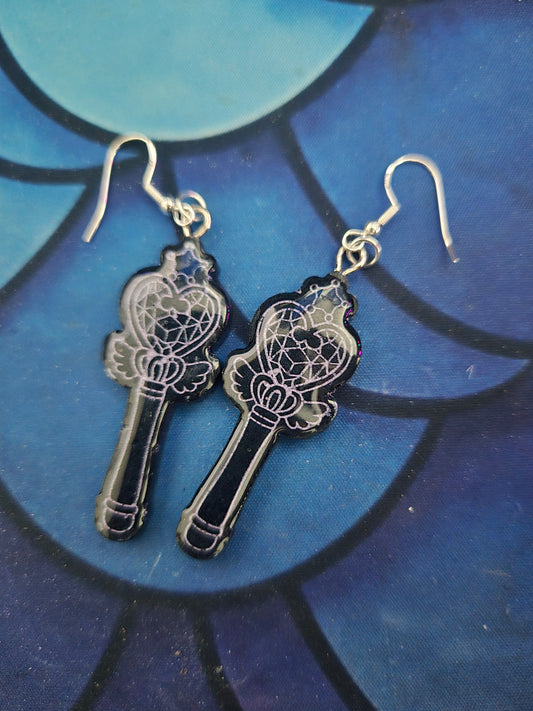 Wired-wrapped beads dangling off of Tibet earring connectors.  All the earrings are either based on anime or video game characters or made from resin.