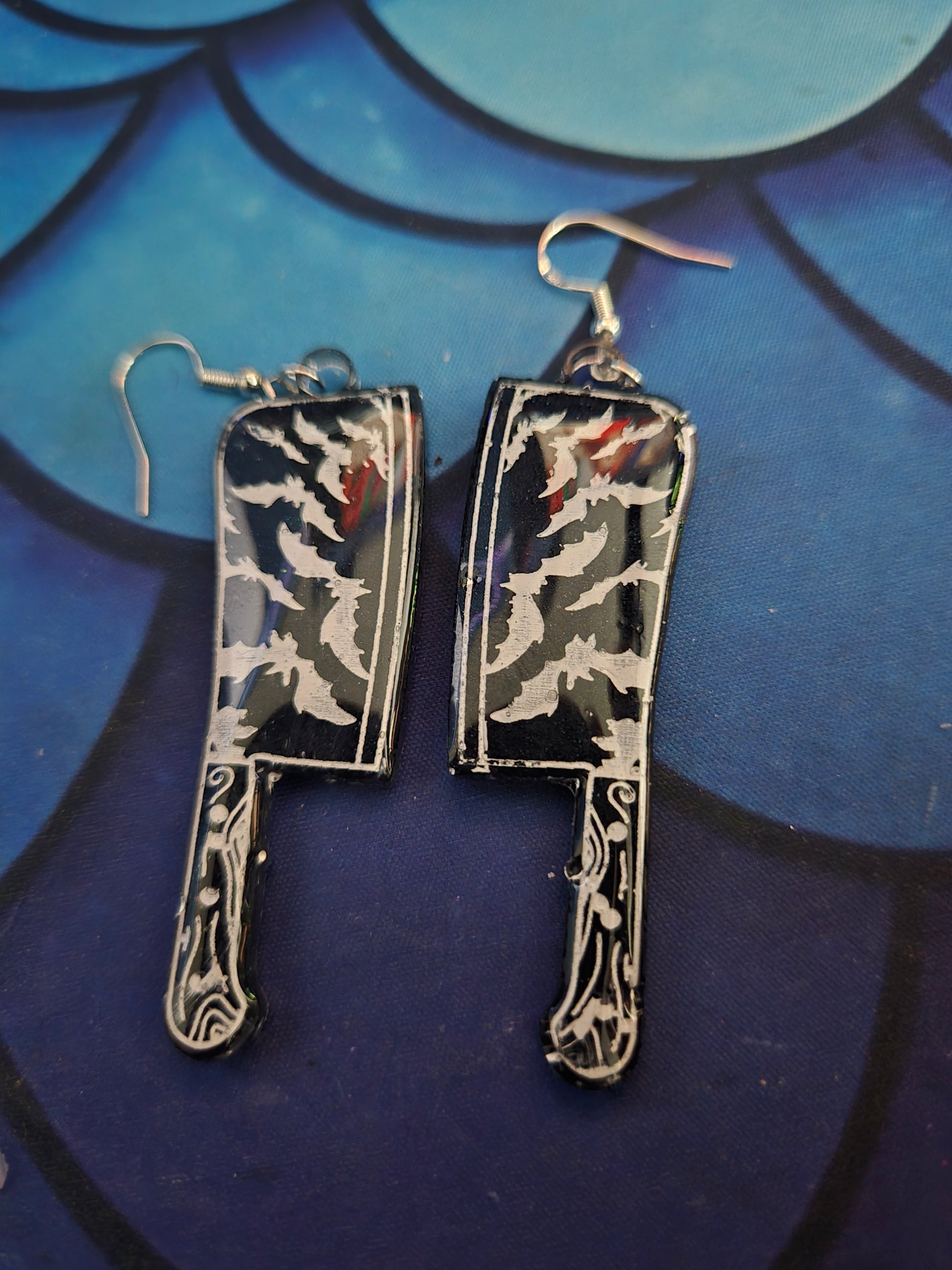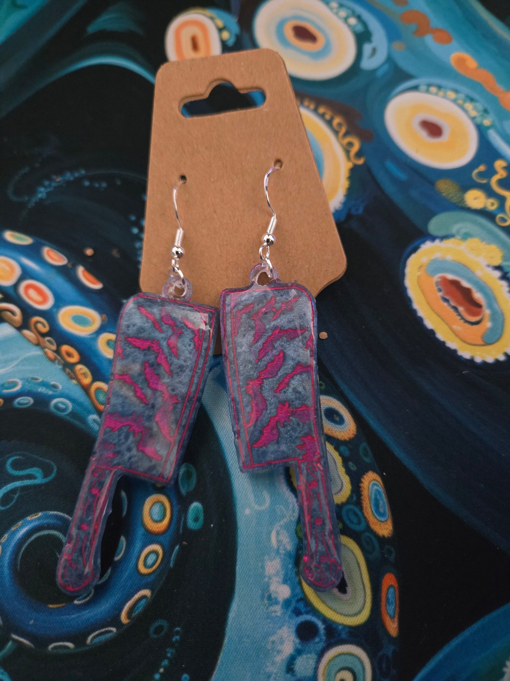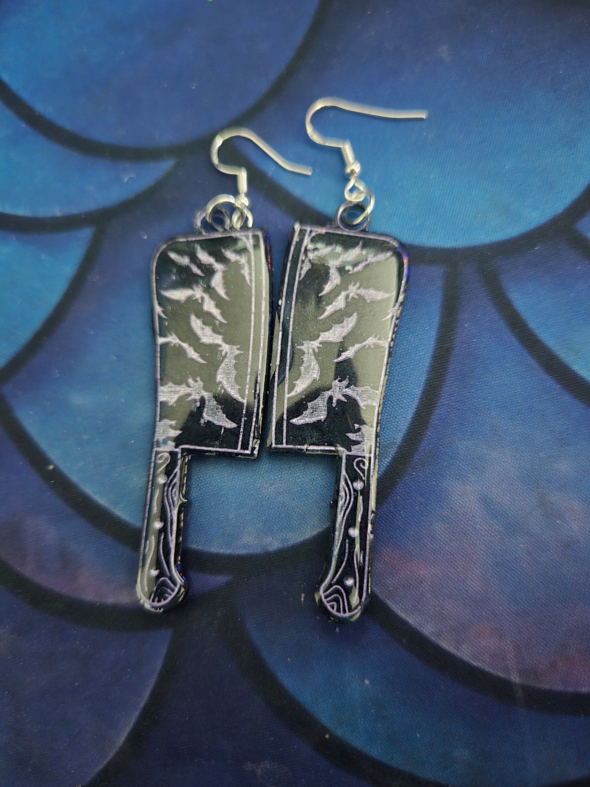 These Butcher Knife earrings are crafted from durable resin and available in a wide range of colors, allowing you to match them with any outfit or style. Their lightweight design ensures comfortable wear, while the unique knife shape adds an edgy, statement-making detail to your accessories collection. Perfect for those seeking bold, distinctive jewelry with versatile color options.