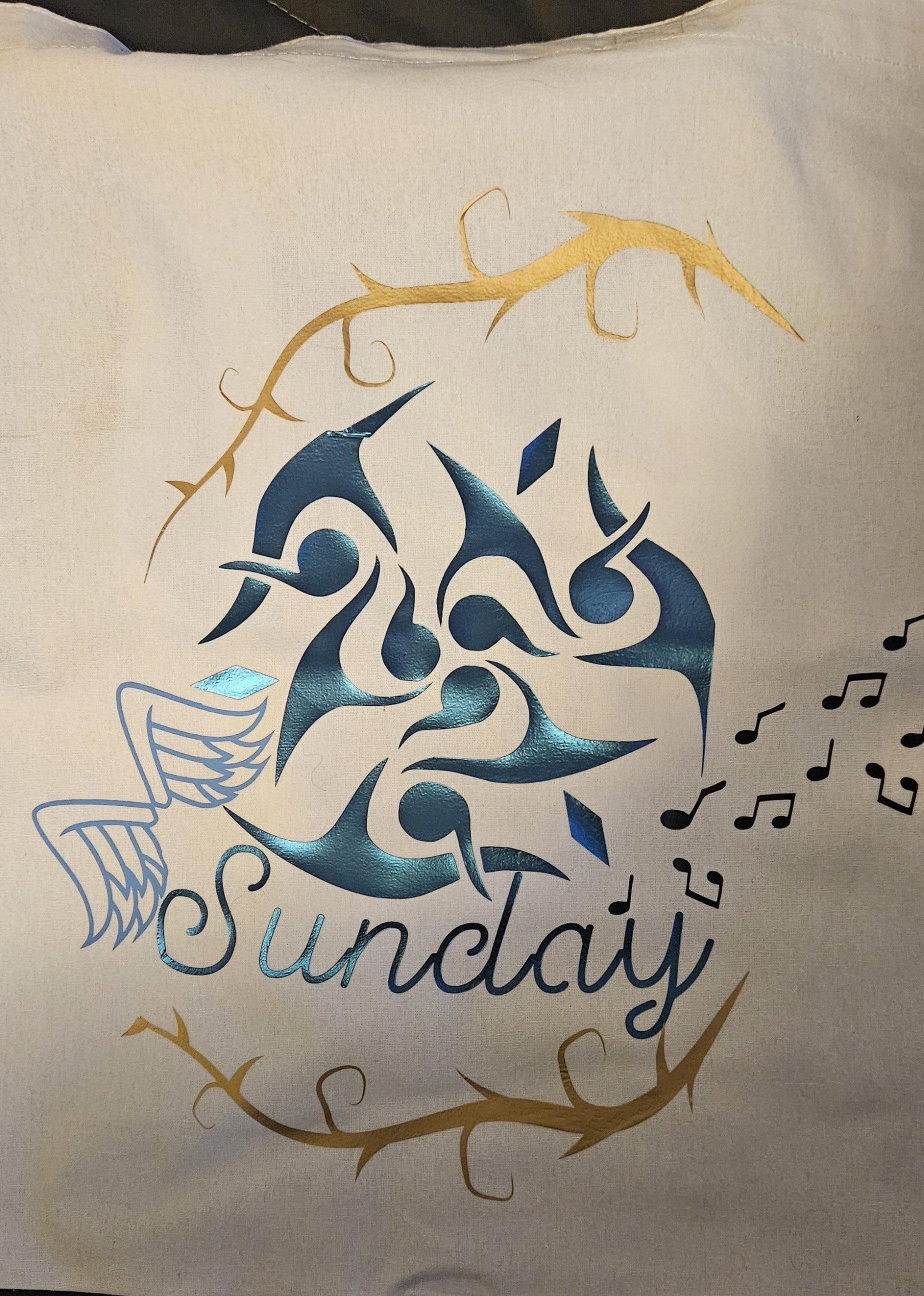 Iron on vinyl tote bag that matches the character's color and a custom design of the character.