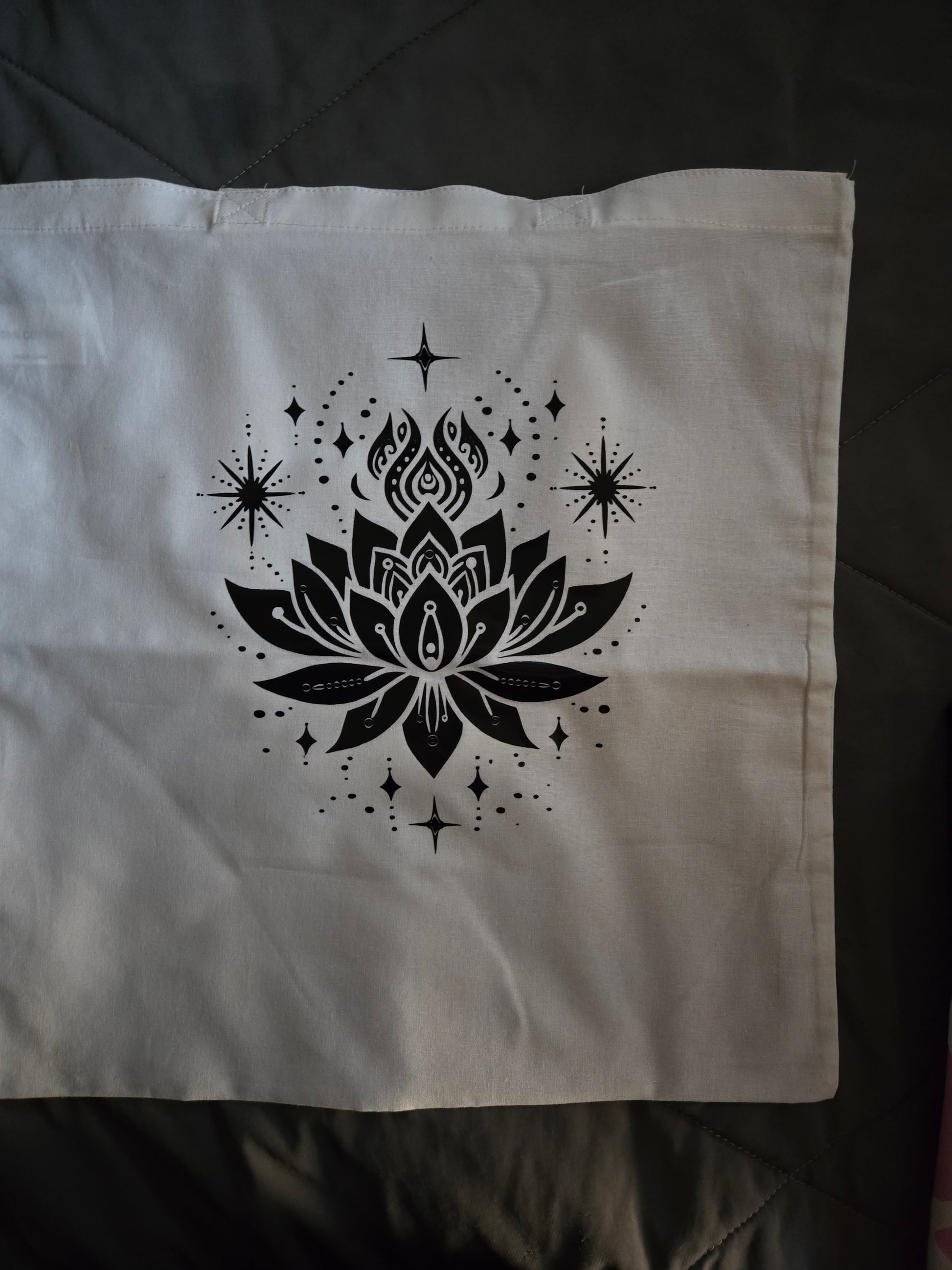 Iron on vinyl tote bag that matches the character's color and a custom design of the character.